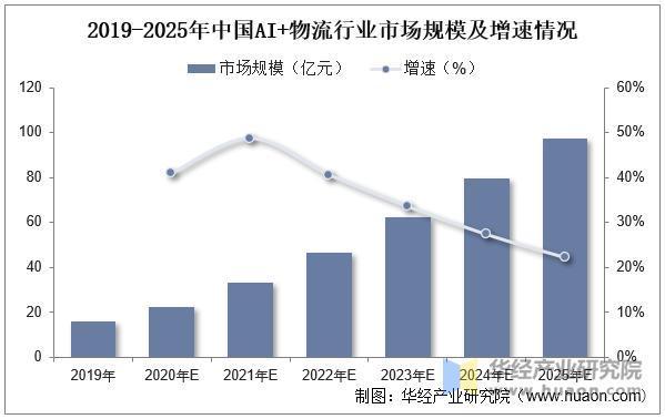 AI在物流中的应用方向可以大致分为两种,一是以AI技术赋能的如无人卡车、AMR、无人配送车、无人机、客服机器人等智能设备代替部分人工,这部分应用市场前景广阔,但受技术水平和政策限制等因素影响,落地条件尚不成熟,还需要较长的培育时间;二是通过计算机视觉、机器学习、运筹优化等技术或算法驱动的如车队管理系统、仓储现场管理、设备调度系统、订单分配系统等软件系统提高人工效率,已具备一定的技术基础,实际场景散落在物流业务体系中的各个角落,场景较为分散。据统计,2019年AI+物流的市场规模为15.9亿元,预计到2025年市场规模97.3亿,年均复合增速为35%。